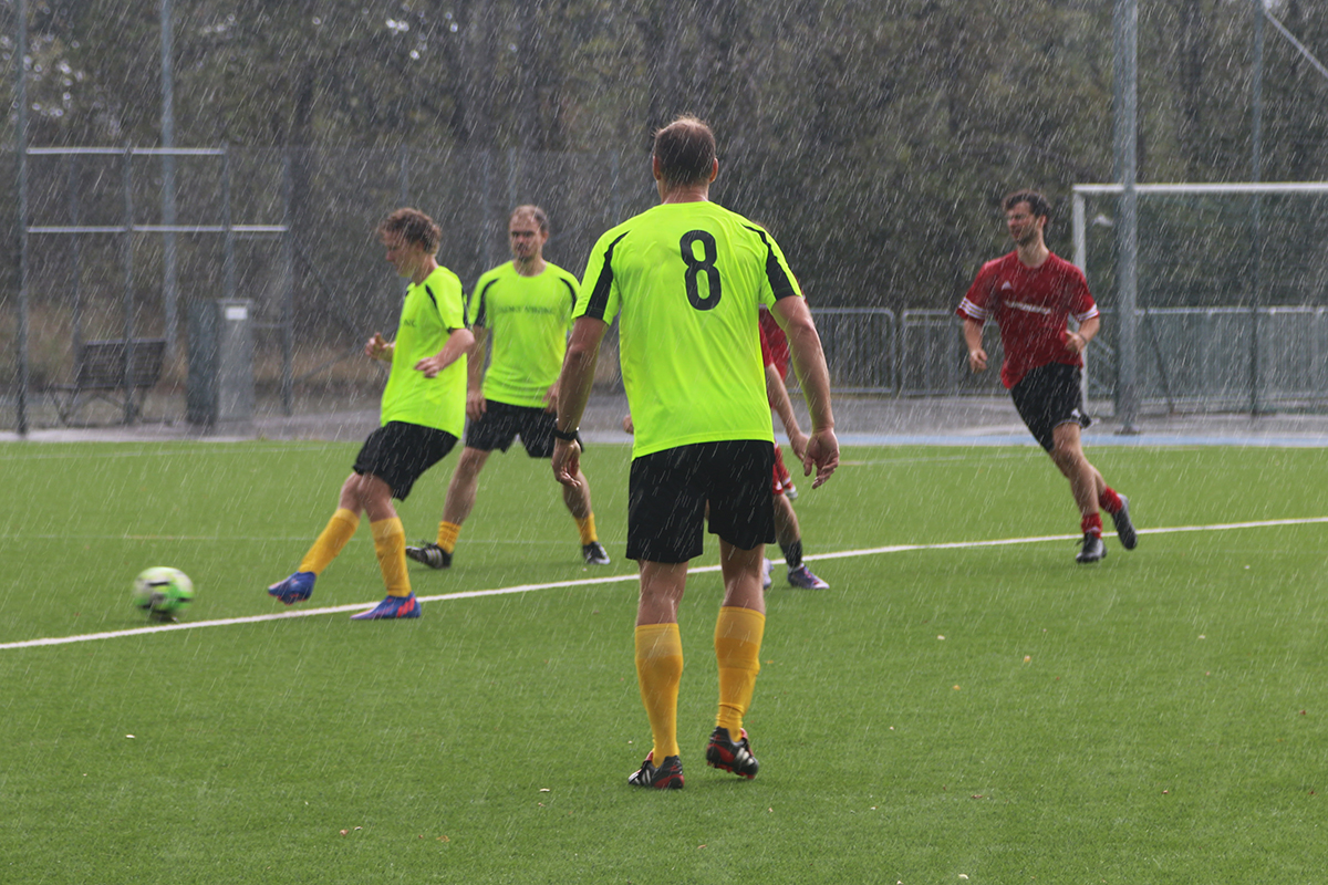 Efter regn kommer solsken, men planen var blöt ett tag, vilket El Dragador och Kajgubbarna fick känna på. Det svartklädda laget hanterade det bäst och vann med 2 mål mot 0.